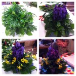 After an extensive health and safety lesson from Sam about how to use scissors, he left. A sigh of relief from all of us to be left with a terrifically capable and gifted florist. She was new to the florist shop (hmmm side bets on how long she lasts with him?).