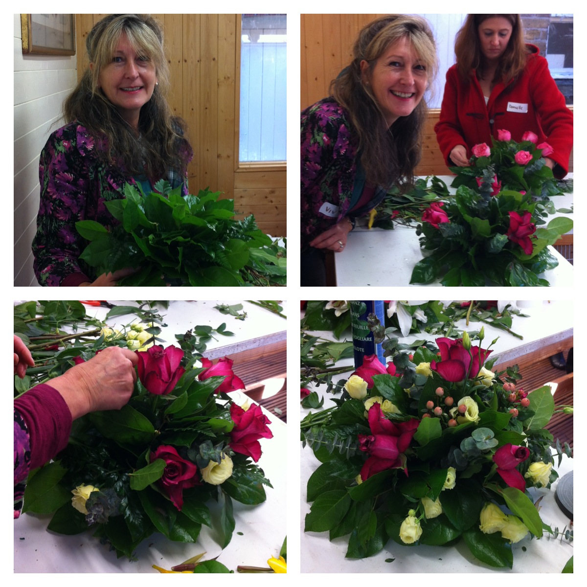 Well actually, it went like this. A friend of mine, Viv, said she’d like to know how to create a decent flower arrangement so she can help out with a friend’s wedding. I told her that in Australia Dave had always been the flower arranger – he used to get fed up with me dumping beautiful flowers into vases in the vague hope that they looked OK! Viv then suggested we do a flower arranging course. I heard myself saying “yes”.