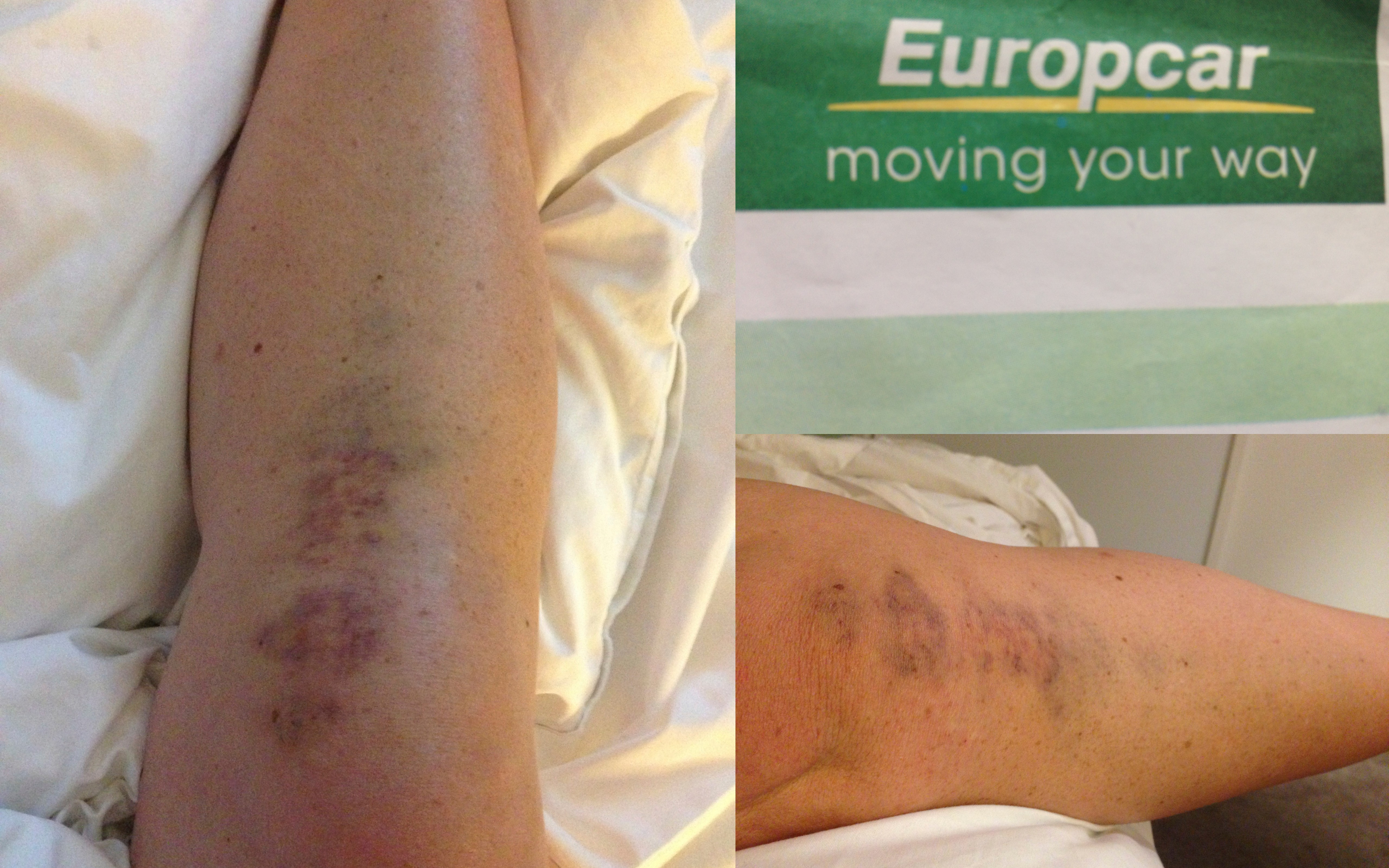 After running Kath to the airport so she can fly back to Sydney, I dropped the hire car off and returned by train to the Apartment. A few chores (washing and ironing!) and I noticed the state of the bruising on my leg. It’s most definitely more colourful.