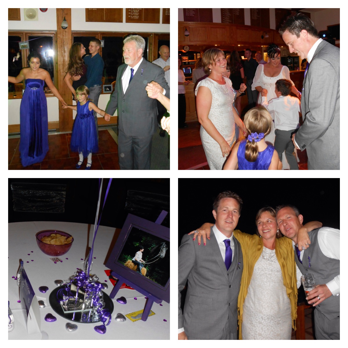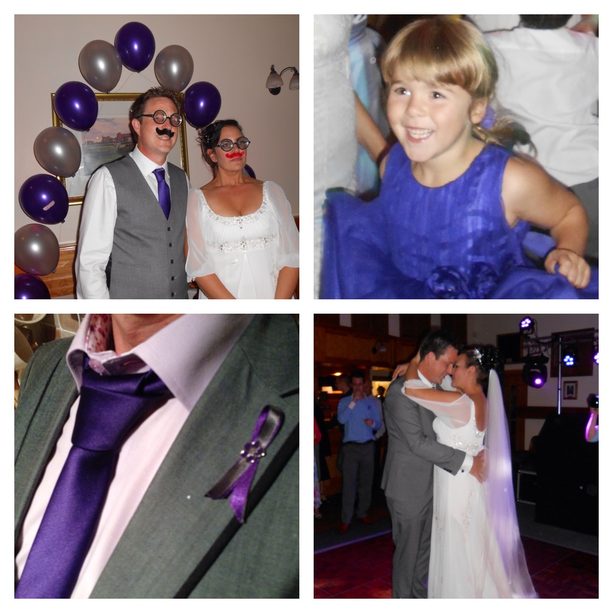 Firstly the colour scheme was a bold purple and white. Why? To honour Vicki’s father and thank the Lymphoma Association. Each guest to the wedding ceremony was given a Lymphoma Association ribbon with a message “Four years ago to this very day a very brave man started his fight against Lymphoma cancer. And he won. Please wear this pin with pride, and in the knowledge that it means that we have helped someone else fight the fight. So they can win too. Just like Vicki’s dad Bryan.” Not a dry eye when Bryan was there to give Vicki away on her special day. At the reception venue there were also collection tins for the Lymphoma Association.