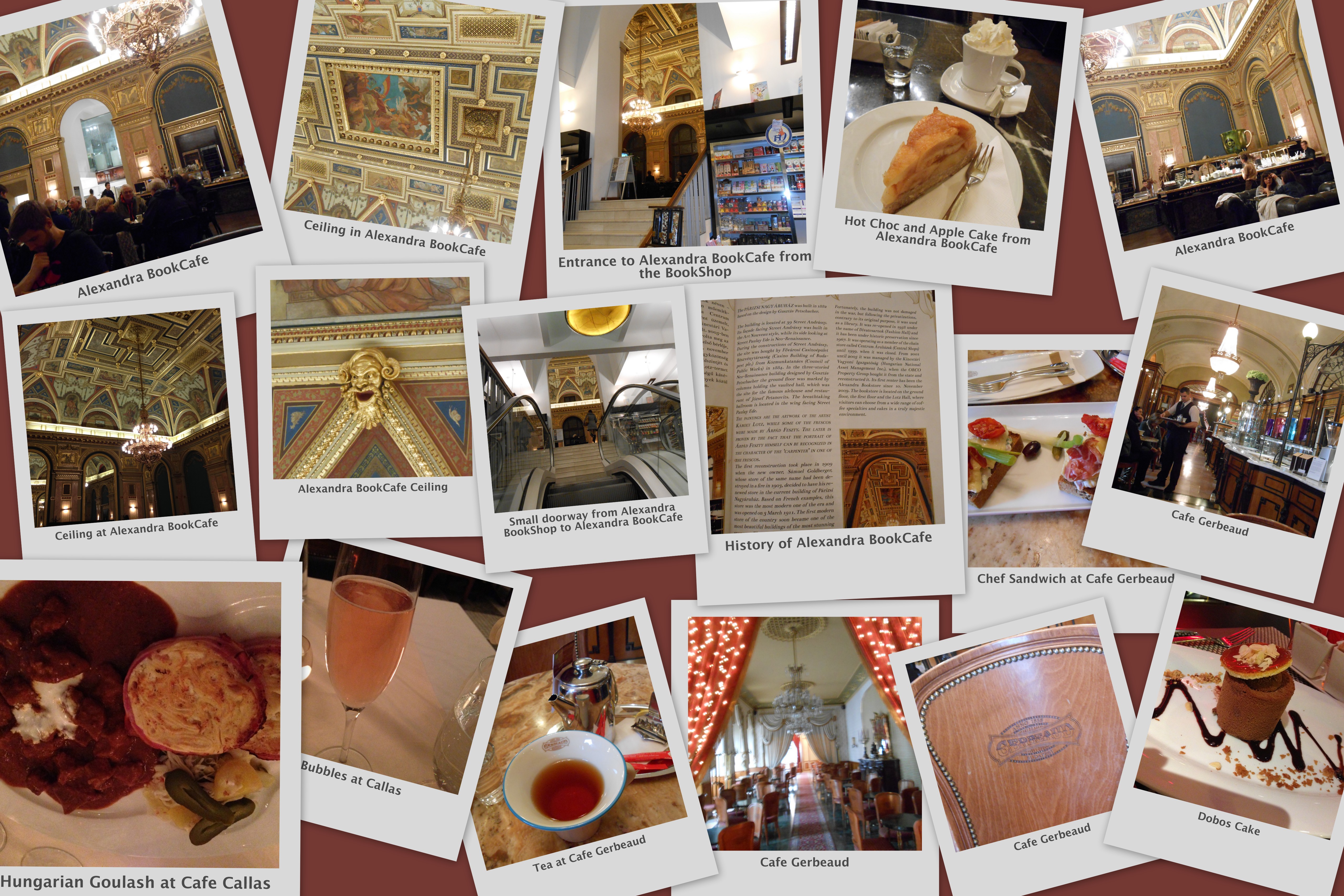 Next I walked the labyrinth of back streets and alleyways through to find cake! I’d been told of the Alexandra Bookshop. But first, I found another cafe that I’d also been told of – the Muvas Tearooms. This old-world tearooms is worth a visit. The sandwiches, drinks menu and, of course, cakes are plentiful and add to the ambiance of old-world charm, ornate ceilings and mirrors. The staff however are a little stuffy but hey! A sit down with a sandwich and iced tea was most welcome. As much as I was tempted by their selection of cake, I headed out again in search of the Alexandra Bookshop. I knew there was a sumptuous cafe behind a bookshop front but somehow I didn’t expect quite this. Truly incredible that you go through a ‘Waterstones-esque’ bookshop, up an escalator and see an archway. Through that is the most incredible tea room. It originally was the second floor of the former Paris Department Store and has chandeliers and fresco-style ceiling painted by Karoly Lotz – the same artist who painted rooms at the Parliament building. Talk about grandiose and renaissance. Hot chocolate and cake were also divine.