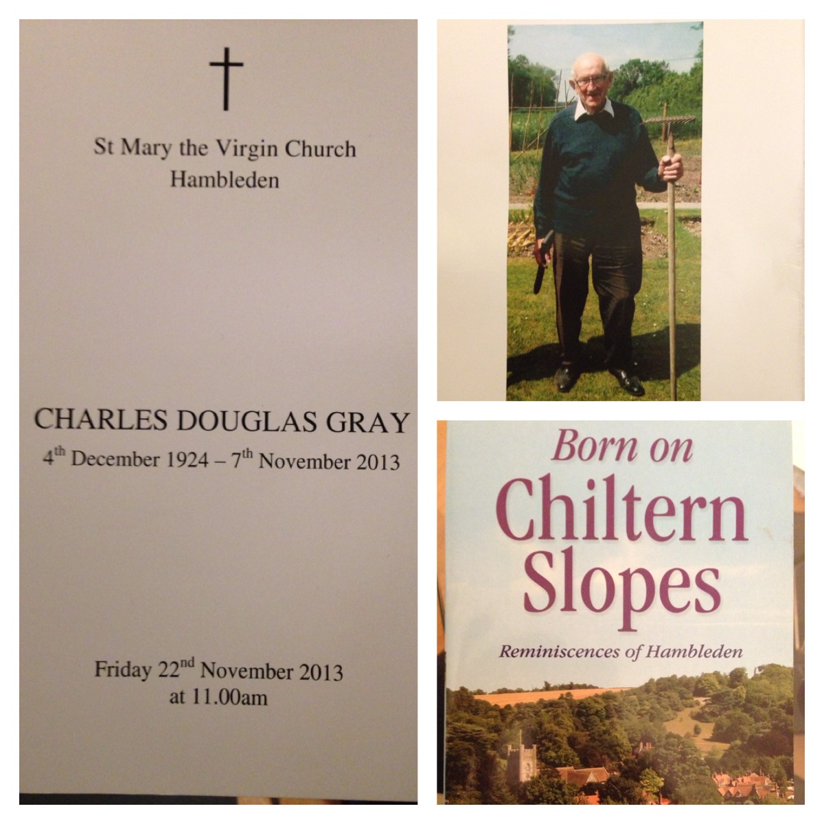 Charles Gray had lived his full life in Hambleden, as had many many Gray generations before him. His only time away had been during the war. Fortunately for us and the wider world, Charlie was persuaded to write his memories down and in 2003 a book was published “Born on Chiltern Slopes”. A fascinating book to those who know Hambleden but also those interested in a period of time and a country setting. On the back of the book is this: