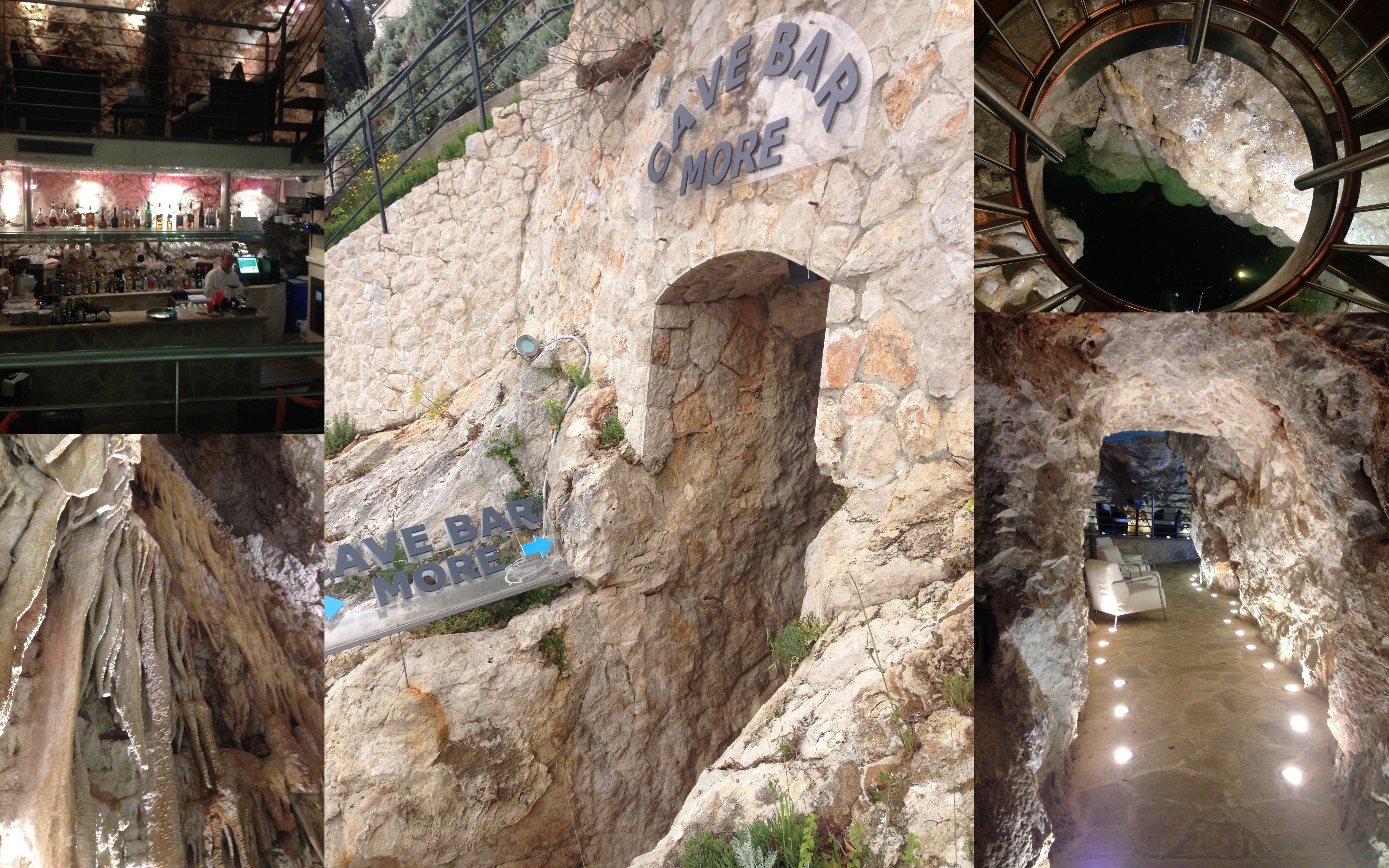 For us, on foot, we chose to walk toward Lapad and in search of the Cave Bar. A lovely walk and into an area that perhaps during the Summer would be my idea of hell. Lapad is clearly set up as a holiday resort. Big hotels with pools, little stretches of beach, karaoke bars and a strip full of restaurants and bars serving ‘English food’. Sadly there were also many many feral cats that were running around eating scraps and waiting at the feet of people eating. This was out of season. Not my idea of fun at all but each to their own. At the end of the ‘strip’ our walk took us to the beach and a oceanside pathway. Back to being stunning again. The sun was shining, the water glimmering and small islands in view. It wasn’t long until we stumbled across some steps down to some outside tables and a cave entrance.