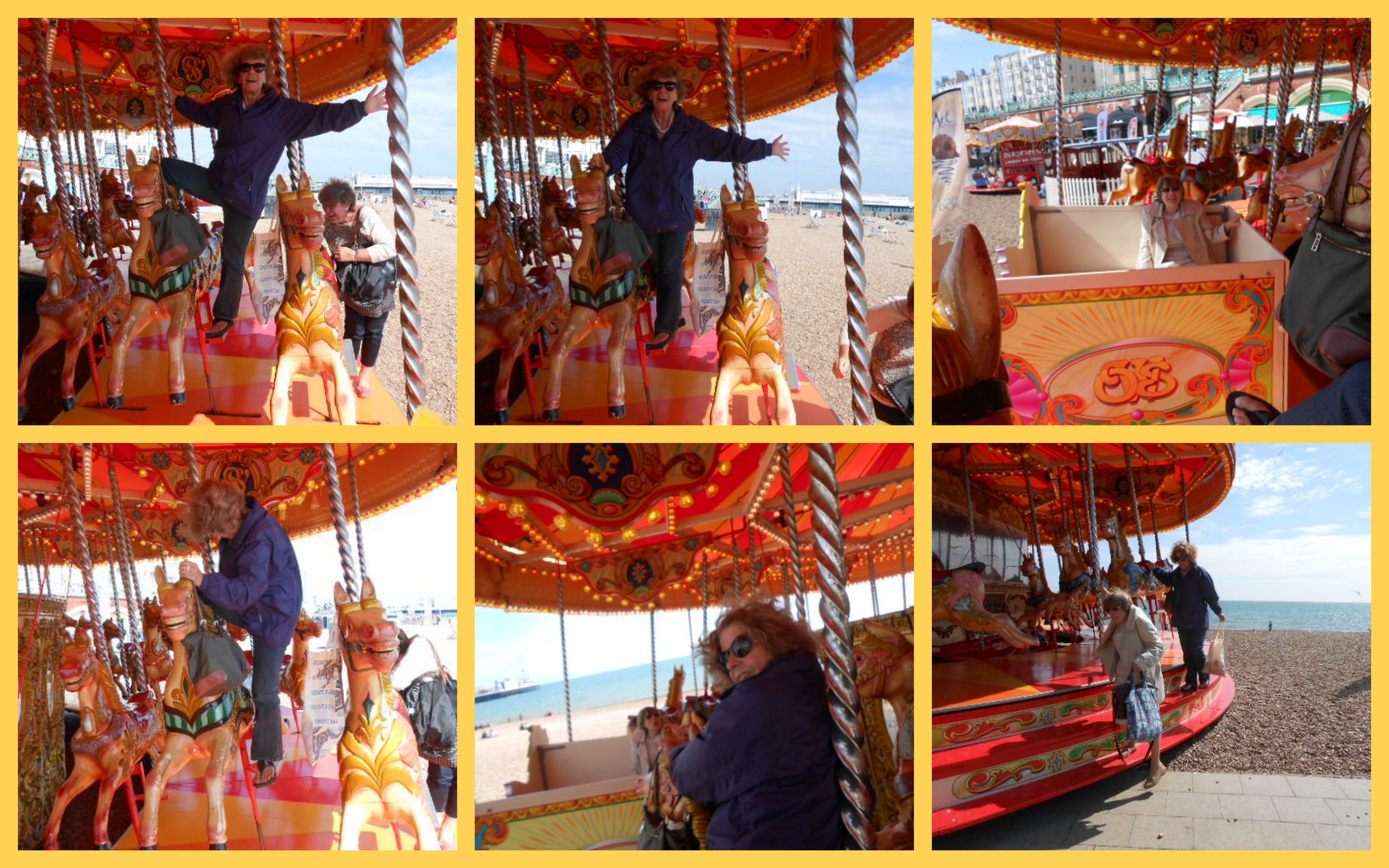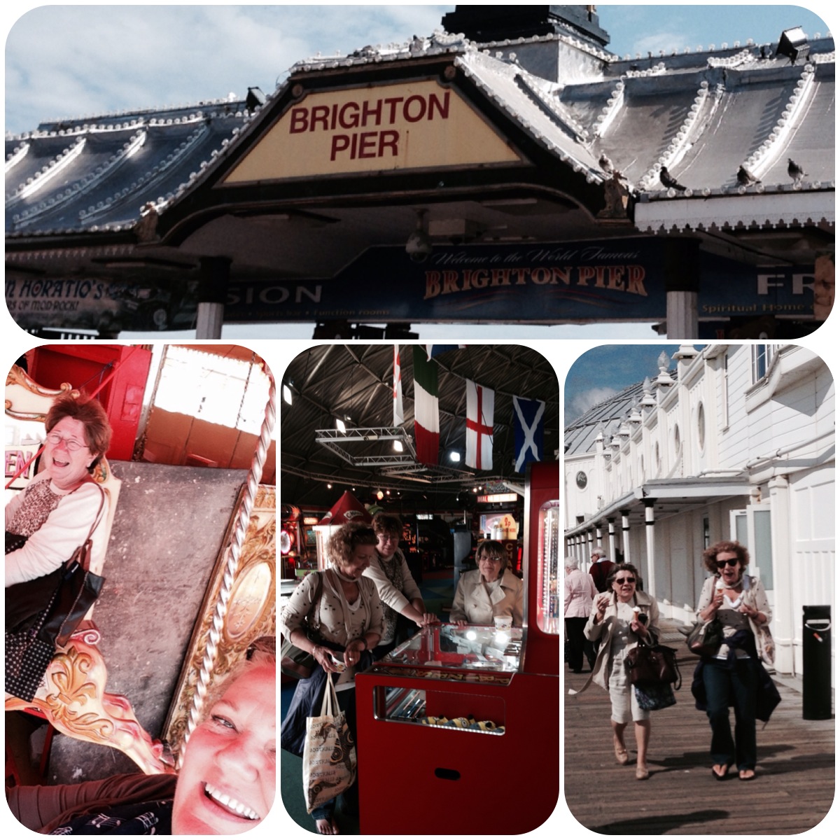 After our delicious fish & chip lunch we headed along the seafront toward the Pier…. but stopping off for a ‘group selfie’ (Linda announced she’d NEVER do a selfie, errr) and a ride on the carousel. Right from the off, Joan was saying she’d not go on it (grump!) but we managed to spot a small ‘seated’ area on the carousel for her to enjoy the ride. Linda quite literally jumped at the horses and promptly managed to sit in front of the pole… clutching onto the poor horses’ ears. Jan and I sat either side of Linda and laughed like drains as the horses went up and down… with each movement we thought we may lose Linda or the horse may lose their ears! I loved seeing adults and children walk past and upon identifying that the laughter was coming from ‘ladies of a certain age’ riding the carousel, we would then see them exchange glasses and burst into laughter themselves!