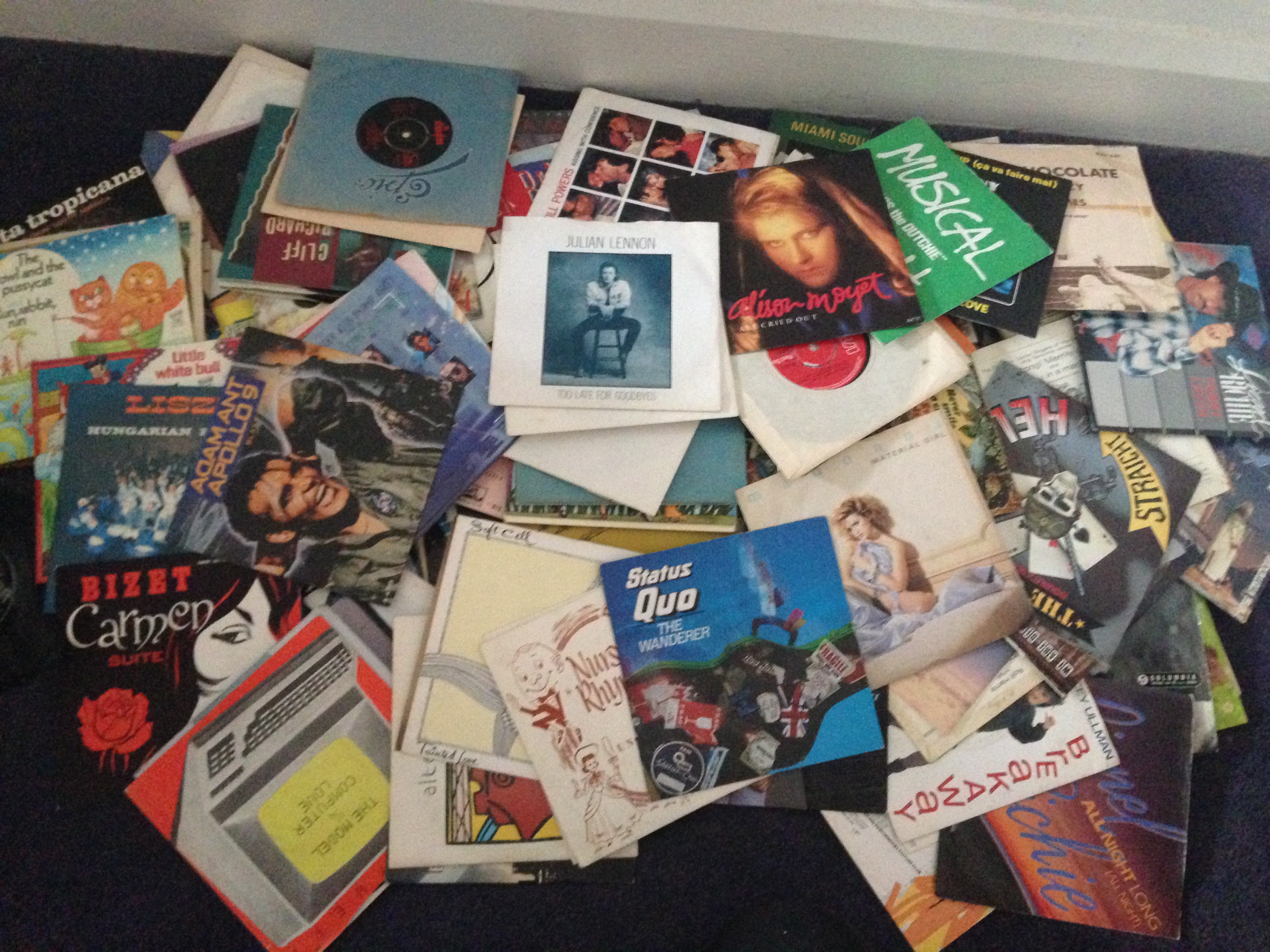 I’ve finally opened up the couple of moving boxes that have been packed up since 1998 when I left for Australia.  They were stuffed with vinyl records.  I haven’t opened the boxes until now as I didn’t own a record player anymore but still I couldn’t bear to part with the vinyl.  There’s something so special about vinyl records.  Unlike most people I don’t remember what was my first record I bought or where – although I suspect it may well be in this collection somewhere.  I do however remember saving pennies to buy the latest music.  Venture into the record shop, spend hours searching it out, listening on headphones to endless other records I couldn’t afford and finally handing over my pocket money for one single record.  Leaving the shop carefully carrying my new purchase and eager for it not to be knocked or bent before I had the chance to play it.  My choice of record was probably influenced from my listening to the Sunday night charts show.  I’d often record the show onto a cassette tape.  It was a tough job.  On a Sunday night you’d be glued to the stereo with your finger on the pause button listening intently to the top 40.  Cleverly you’d pause the recording between records so as to avoid the chatter of the DJ making the perfect mixed tape to listen to all week.   I’m quite sure that hour or so was a blessing to parents around the country who got peace and quiet whilst we carefully listened to the chart show in our rooms.