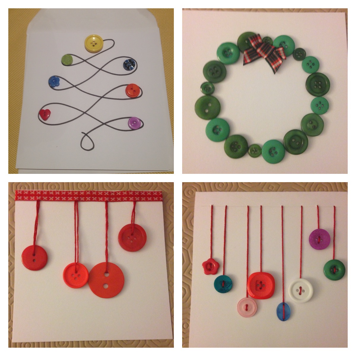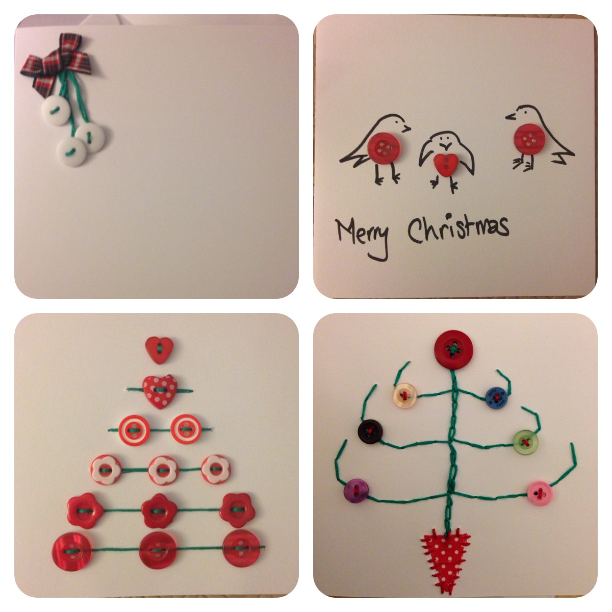 Firstly I should say a huge thank you to my friend, Miranda, for passing on her obsession with buttons and crafting to me! We spent a Saturday afternoon in late November making Christmas cards with buttons. Finding designs on Pinterest and the internet that we could copy or give us inspiration to change and then create ourselves. A very patient Pete (Miranda’s hubby) watched the sport on TV whilst trying to block out our nattering and excitement as we successfully created a new card design.