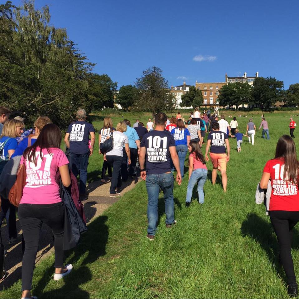 Yes it was inevitable that there’d be a heap of people on Richmond Hill having hot choccie. They’d traveled from everywhere and even from the other side of the world to be there. Many people were sporting 101 t-shirts/sweatshirts (another project that Greig had organised to raise funds for Cure Brain Cancer Foundation and raising no less than £1,668.