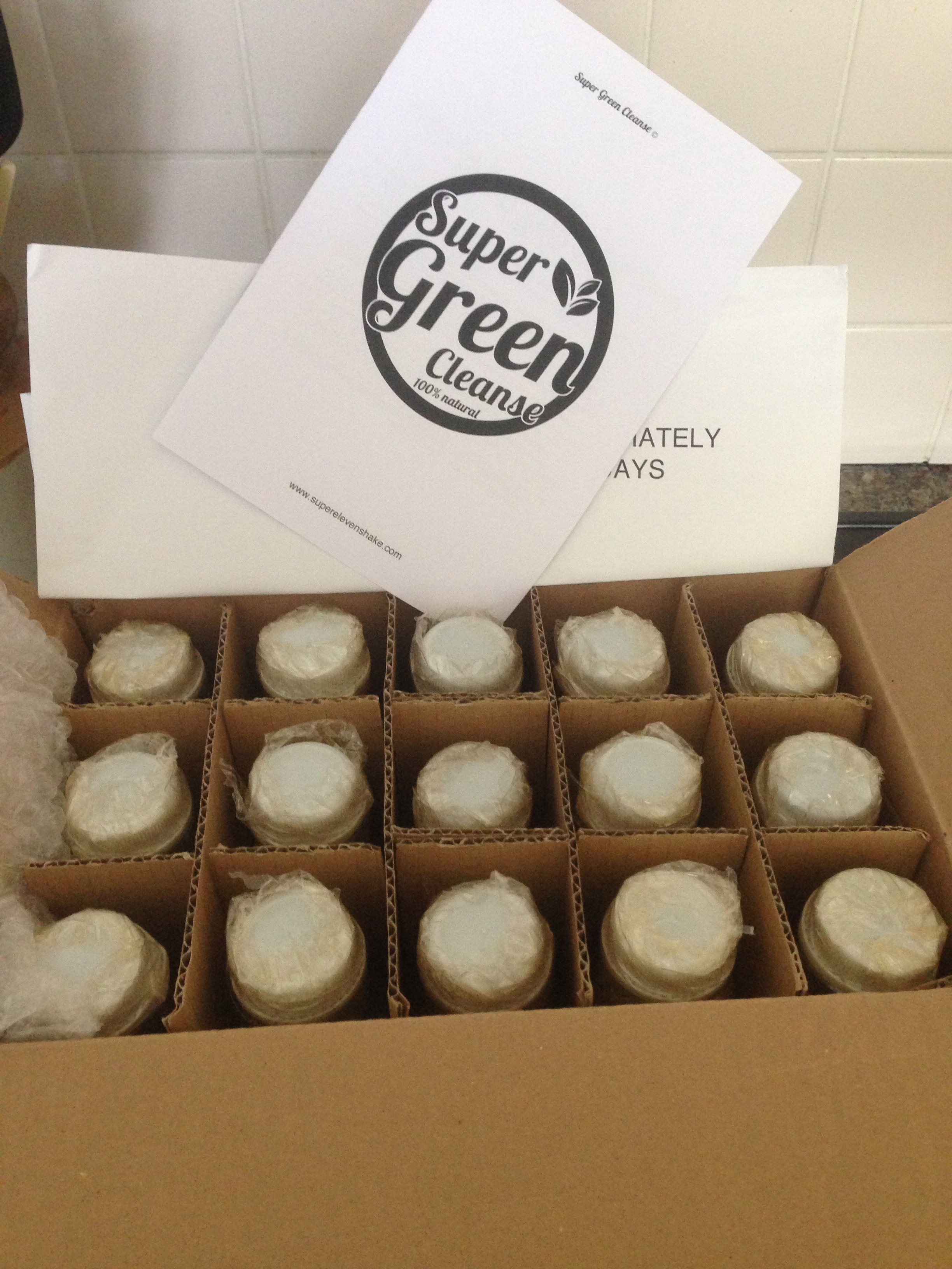 Early morning on Tuesday I took delivery of this parcel.  I’m trying out the Super Green Cleanse by Super Eleven Shake Ltd