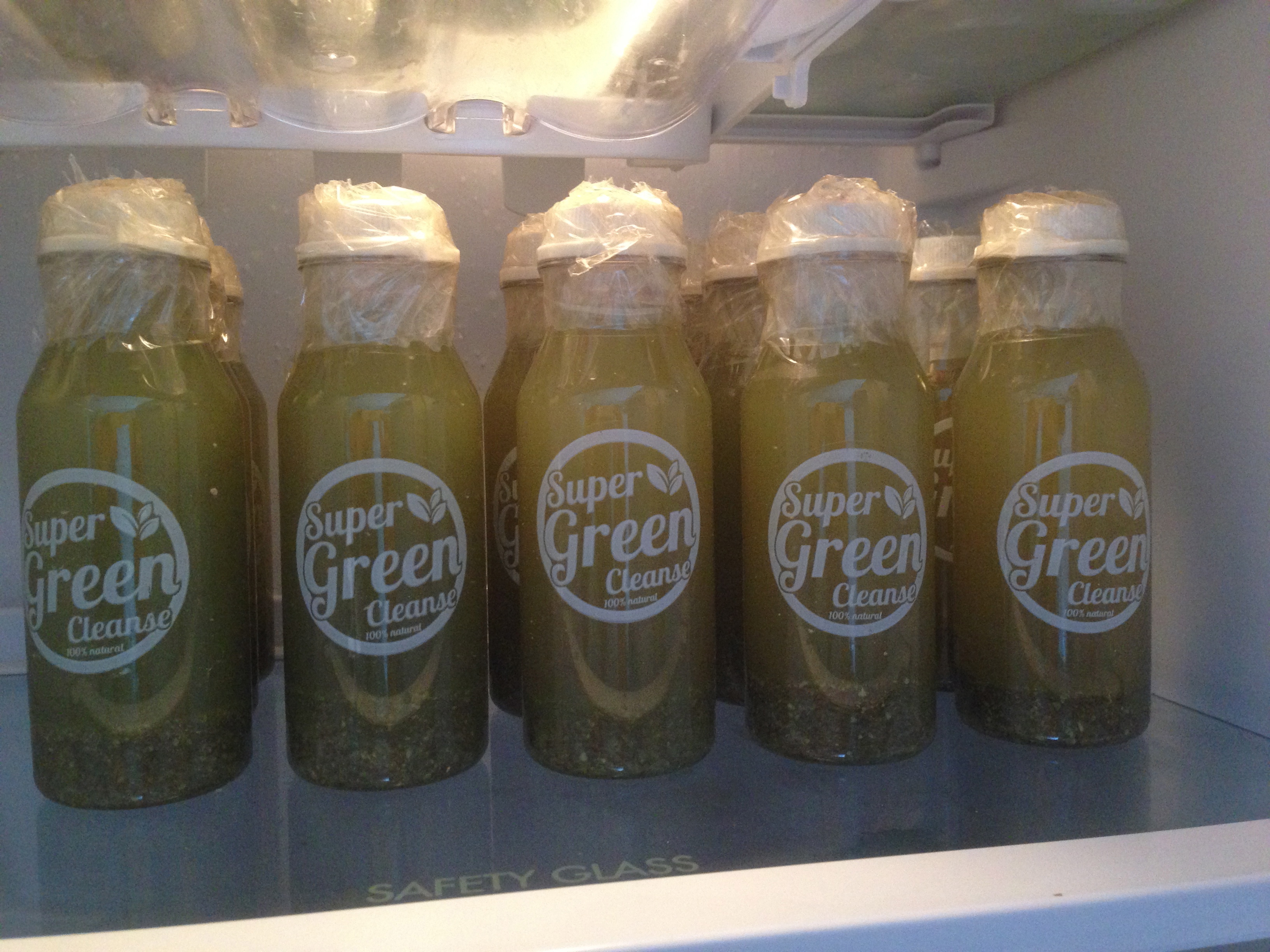 Does the Super Green Cleanse bottles last in the fridge?  Yes, there doesn’t seem to be any oxidising and the lids are securely taped down with layers of sellotape.