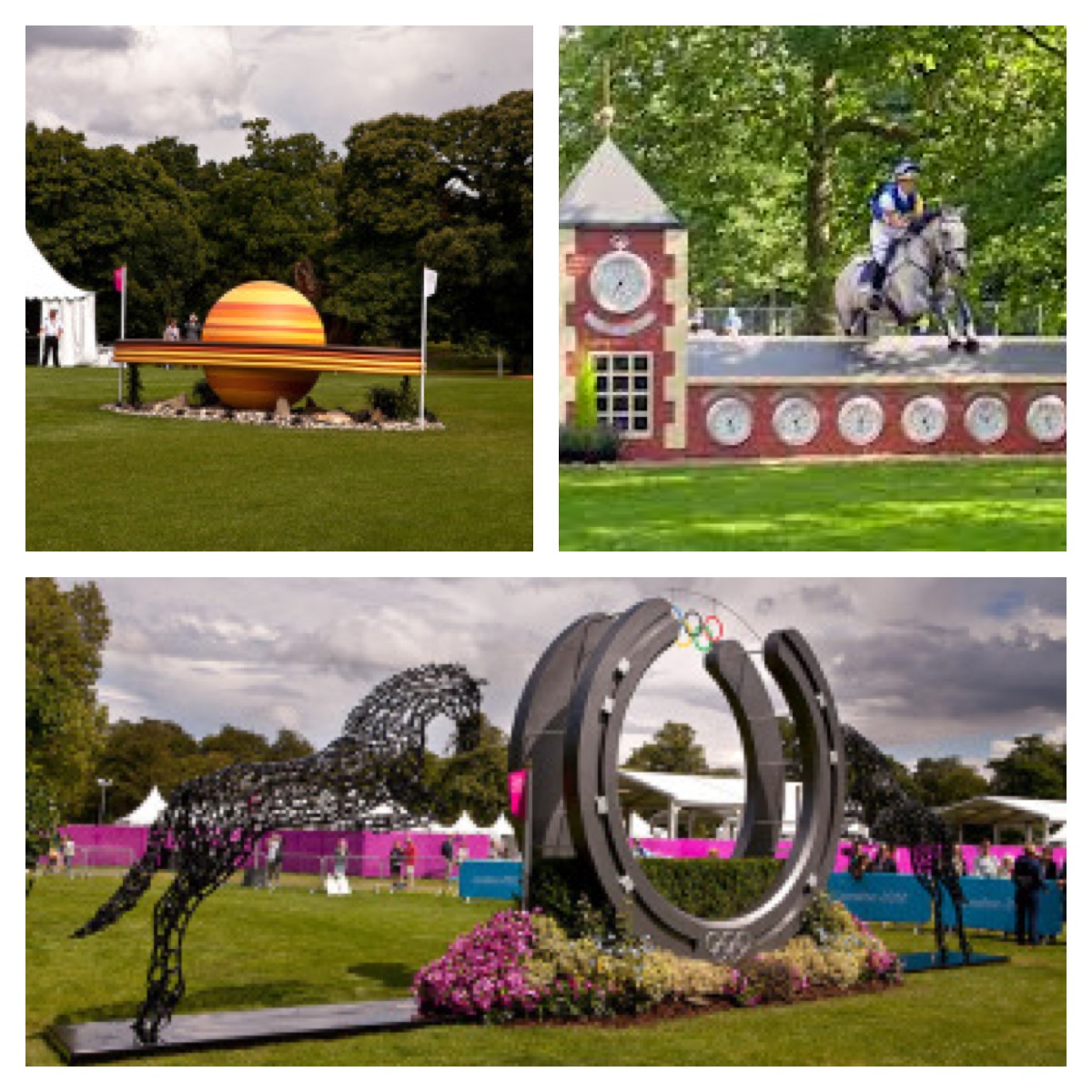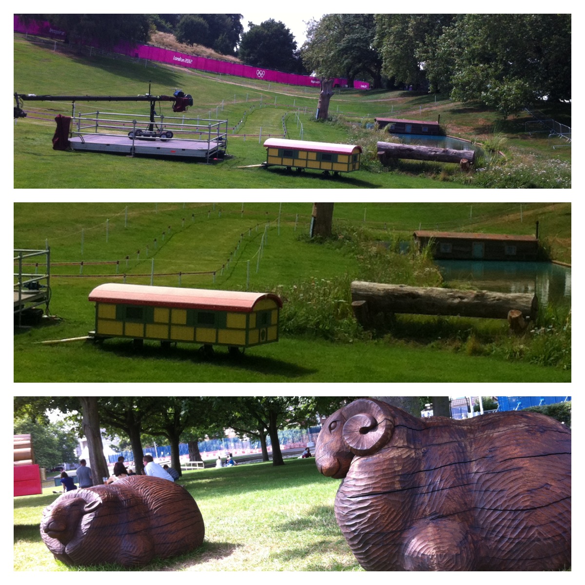 By arriving via Blackheath train station we were able to walk right through Greenwich Park and see some of the jumps that had been used for the cross-country equestrian course in the Park. What fun must the jump makers have creating something that not only complies with all the regulations of equestrian jumps but also eclipses Great Britain and an element of fun. I’ve looked at some pictures I took but also added some from the internet…. love that we have sensible jumps of the moon and planets but also ones that represent Wind in the Willows too.